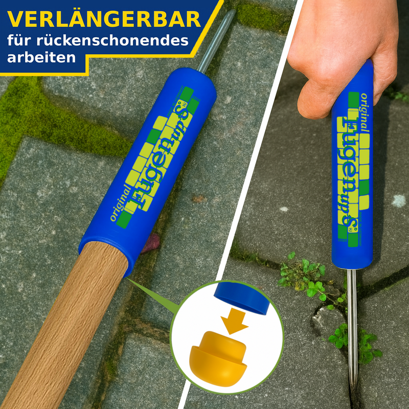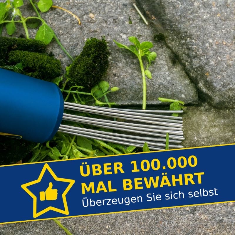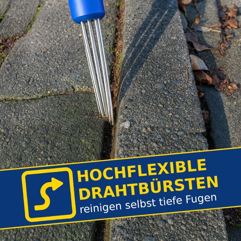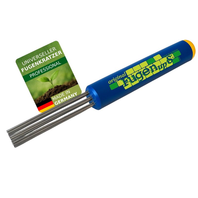 FugenUps, Fugenkratzer, Fugenreiniger, Moosentferner, Pflasterfugen Reiniger, mit 15 Edelstahl Spezialdrähten, verlängerbar mit Besenstiel