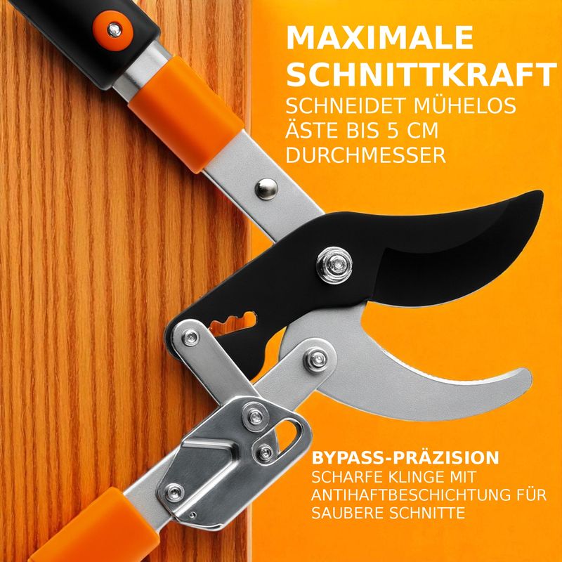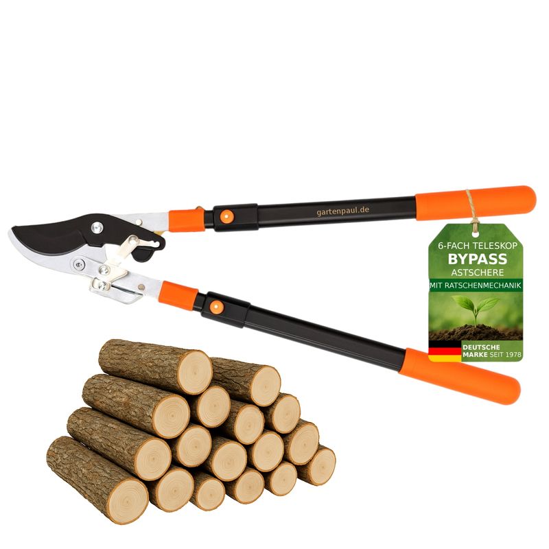 Gartenpaul 6-Fach Teleskop-Astschere Bypass – Profi-Astschere mit Ratschenmechanik & 5 cm Schnittstärke