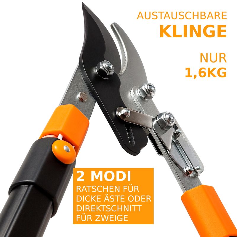Entweder kraftsparendes Ratschen-System für dicke Äste oder direkter Einzelschnitt für kleinere Zweige – Du entscheidest!✅ Scharfe, langlebige Klingen aus Präzisionsstahl: