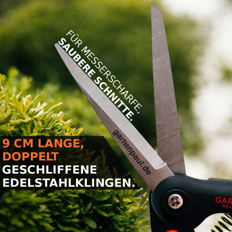 9 cm lange, doppelt geschliffene Edelstahlklingen sorgen für messerscharfe, saubere Schnitte – ganz ohne Quetschen oder Ausfransen.✅ Schonend für Pflanzen: